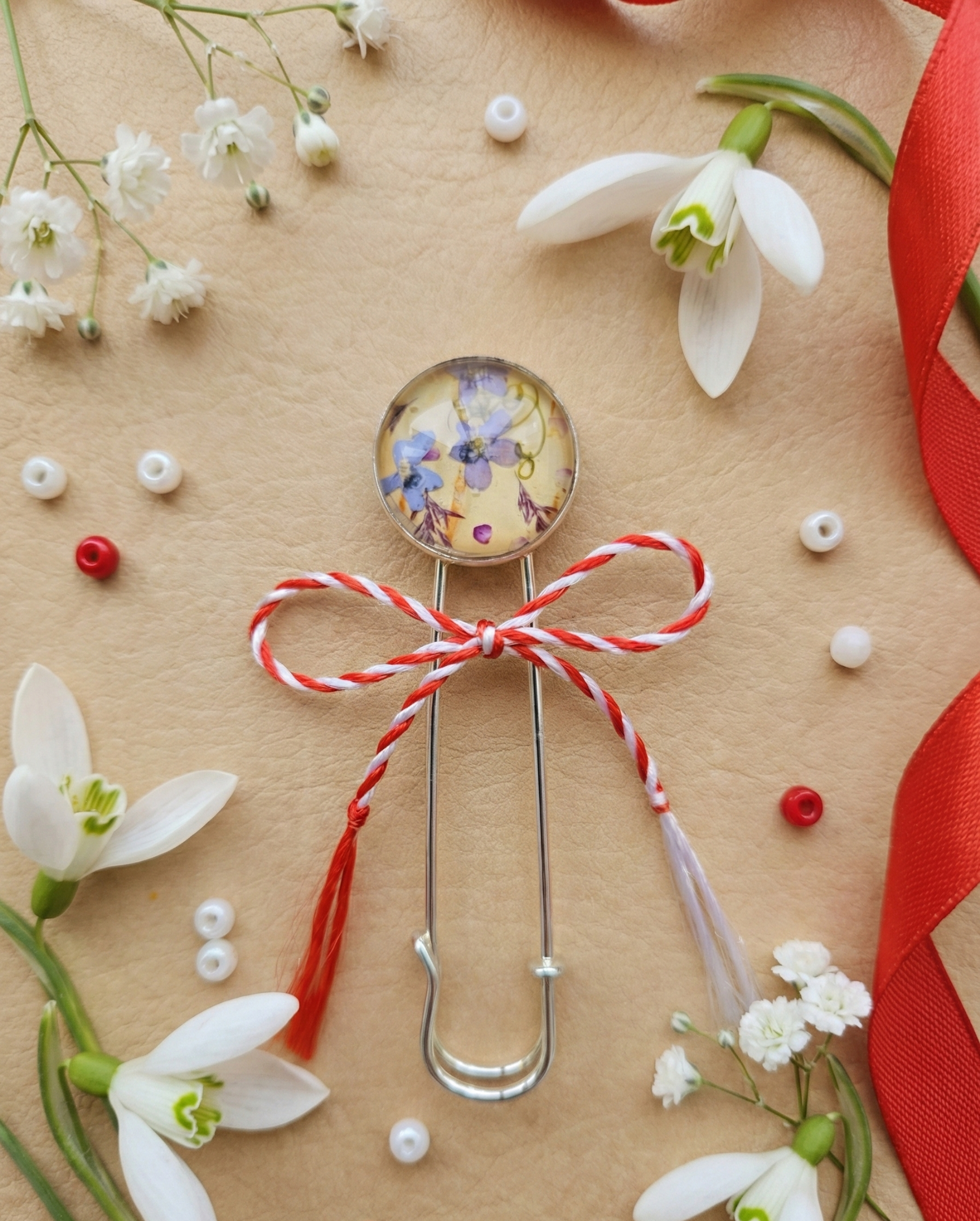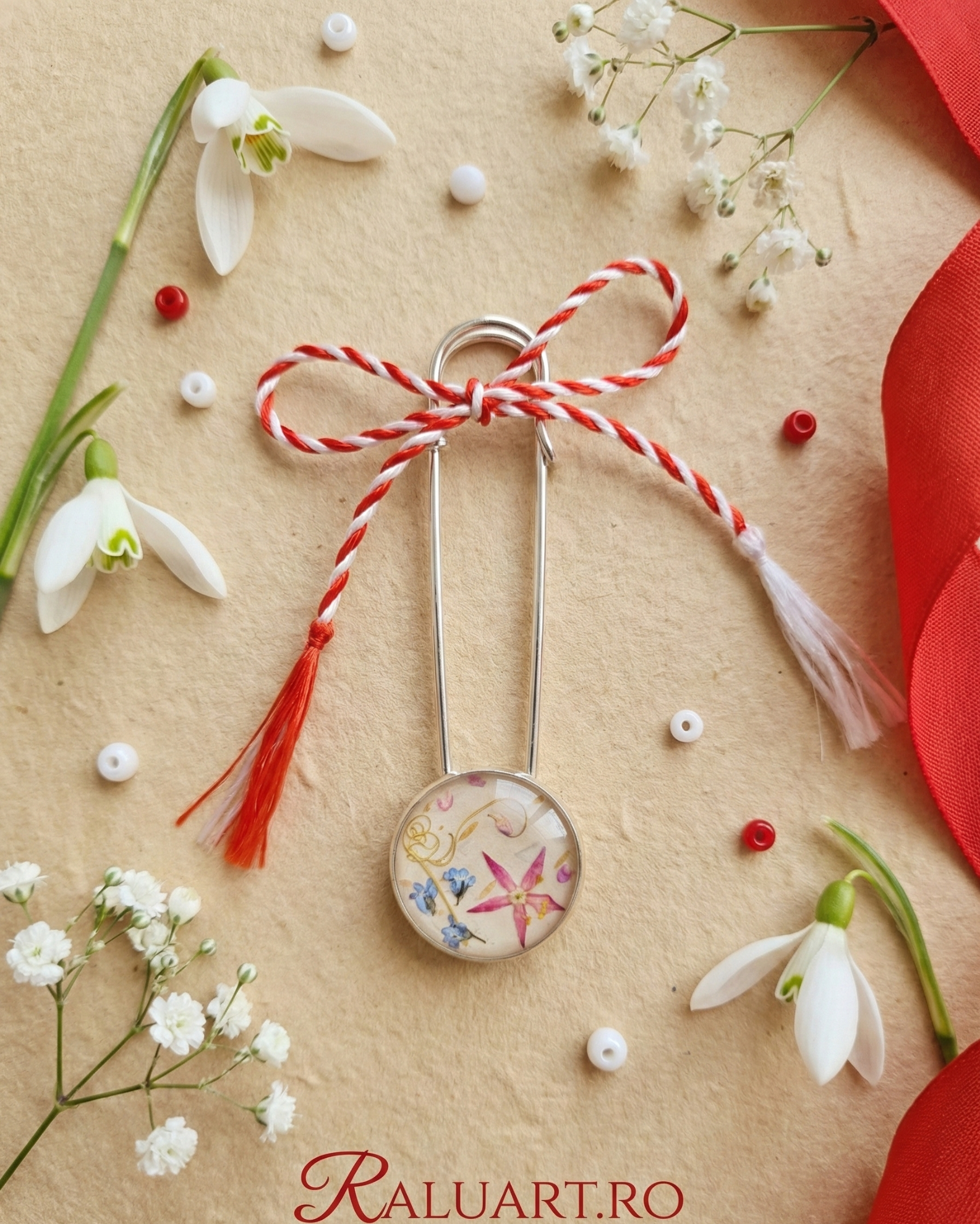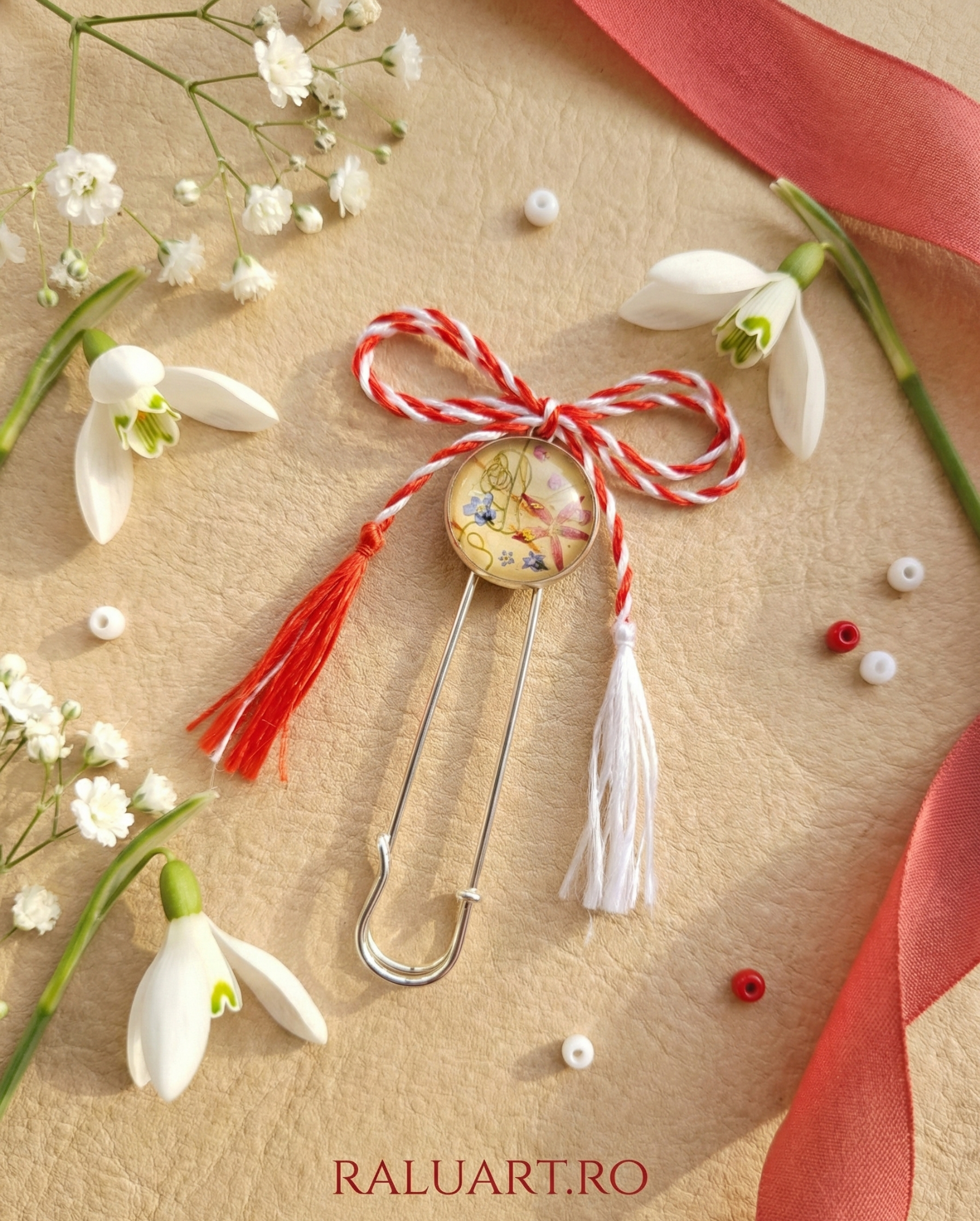 Prezentare: Produsul vine însoțit de șnurul de mărțișor și un cartonaș suport elegant, gata pentru a fi dăruit unei persoane care iubește natura.