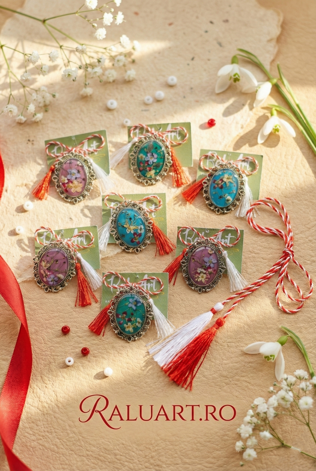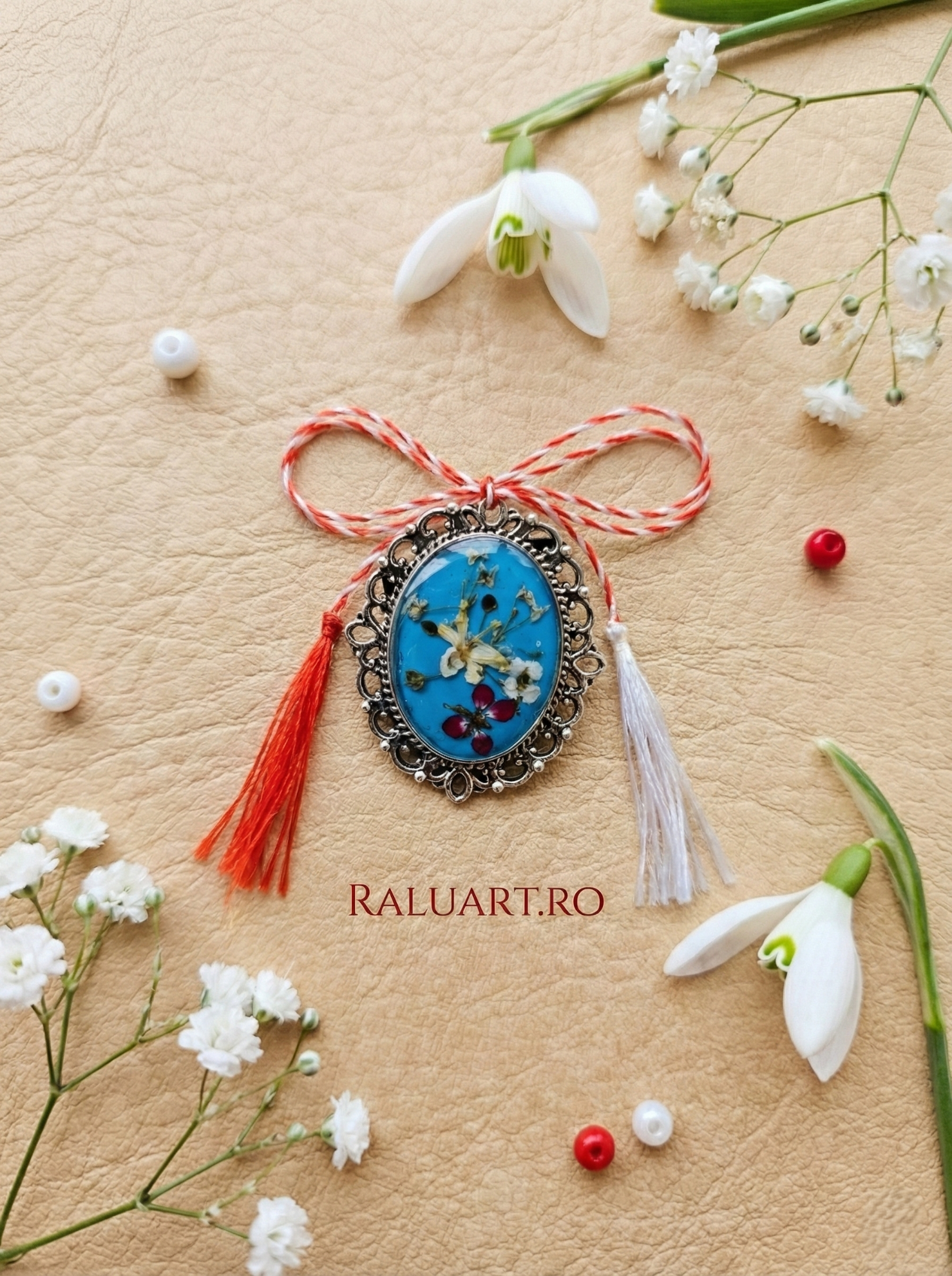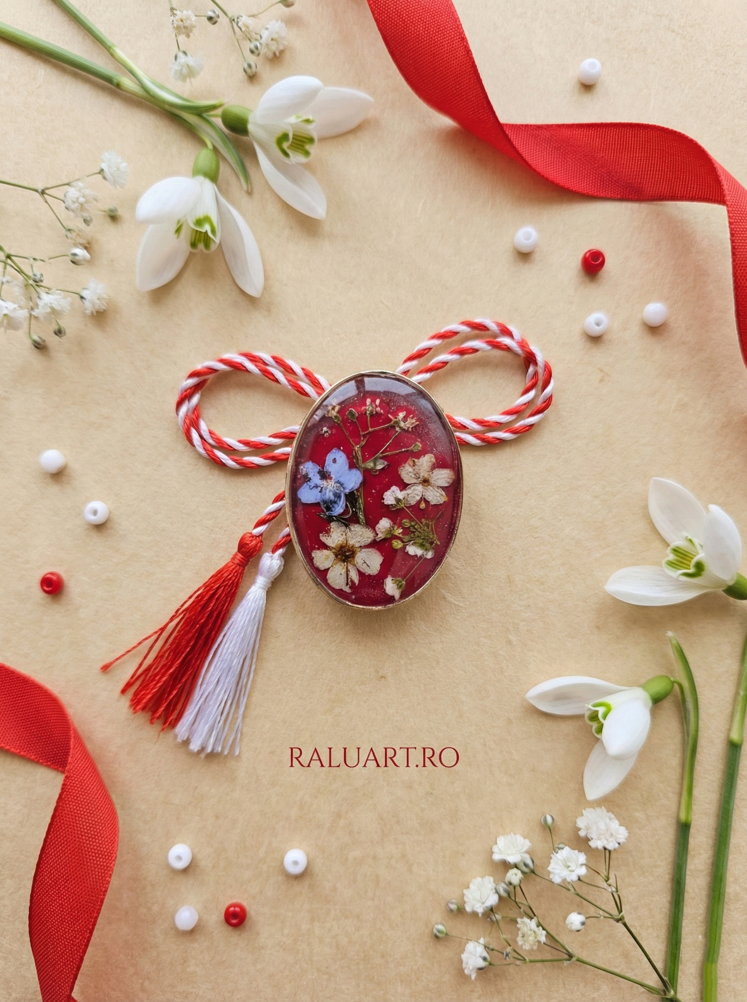 Prezentare: Vine montată pe un suport de carton personalizat, cu șnurul tradițional alb-roșu inclus.